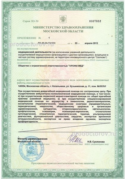 Медицинские услуги оказывает МО область, г. Котельники, ул. Кузьминская 11